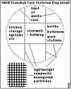 at the 1991 International Space development Conference in San Antonnio. Three concepts from this paper have found their way into mainstream NASA thinking. There has been no attribution to me, but that is fine. I did not have the expertise to carry the basic ideas further, and was thrilled and delighted to see one of them come to life and be validated in NASA's TransHab mockup in Houston, while on a visit in May 1999. This paper is not currently online and the original illustrations were hand drawn, so I do not have electronic copies.